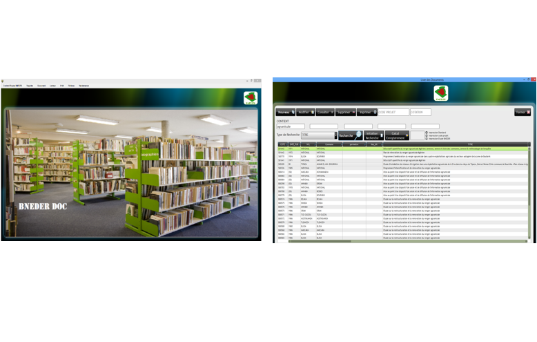 Une nouvelle application de gestion documentaire "BNEDER DOC" a été conçue récemment par le département de Génie Logiciel (GL), dans le but d’améliorer la gestion du fil de la chaine documentaire (enregistrement, traitement du document, recherche prêt…).Cette dernière, qui vient remplacer l’ancienne application, a été enrichie de plusieurs options et fonctionnalités, notamment :