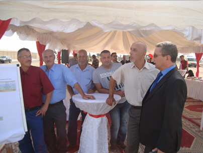 La délégation ministérielle s’est rendue également dans l’exploitation Mosta Boustane (312 hectares) dans la commune de Fornaka, issue d’un partenariat public (ferme pilote) – privé. Avant de quitter cette ferme, qui affiche des résultats très probants, un exposé de l’étude du périmètre de mise en valeur Bordjias, dans les communes de Sirat et d’El-Hassiane sur une superficie de 1 740 hectares, a été présenté par M. Alès Rachid, Directeur du Bureau de Liaison Centre. Quelques échanges ont eu lieu entre Monsieur le Ministre, Monsieur le Wali de Mostaganem et l’équipe du BNEDER concernant ce périmètre, notamment en ce qui concerne le financement des actions structurantes.