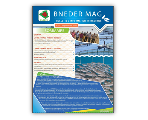 Le développement de l’aquaculture et l’intégration de la pisciculture à la production agricole, est la principale thématique traitée dans le nouveau numéro du bulletin d’information trimestriel "BNEDER MAG", du mois de Septembre 2015.On peut lire au sommaire de cette nouvelle édition plusieurs sujets également :