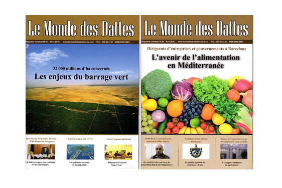 Le centre documentaire du BNEDER a été destinataire des deux derniers numéros du magazine mensuel ‘’Le Monde des dattes’’ des mois mars et avril 2016.
