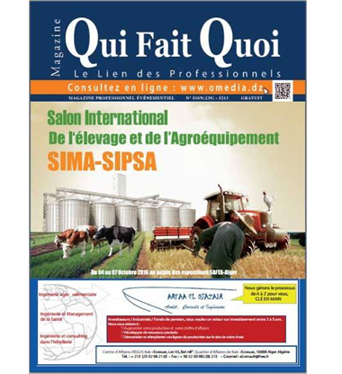 Le Magazine professionnel Qui Fait Quoi a été le partenaire média du dernier SALON SIMA-SIPSA "Salon International de l'Elevage et de l'Agroéquipement " qui s’est tenu du 04 au 07 octobre 2016 à la SAFEX, aux Pins Maritimes à Alger.
