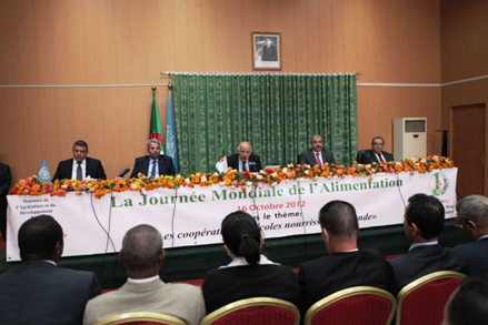 Le Docteur Rachid BENAISSA, Ministre de l’Agriculture et du Développement Rural, a présidé le dimanche 15 octobre 2012, au siège de la Chambre Nationale d’Agriculture (CNA), sis au Palais des Expositions, Pins-Maritimes, Alger, la cérémonie officielle de célébration de la Journée Mondiale de l’Alimentation (JMA).