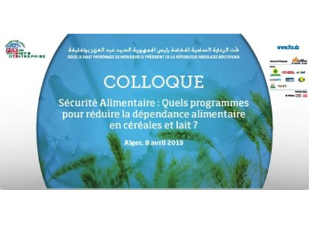 Sous le haut patronage du Président de la République, Monsieur Abdelaziz BOUTEFLIKA, le Forum des Chefs d'Entreprise (FCE) organise, le lundi 08 avril 2013 à l’hôtel Sheraton Club des Pins à Alger, un colloque qui aura pour thème : "Sécurité alimentaire : Quels programmes pour réduire la dépendance alimentaire en céréales et lait ".