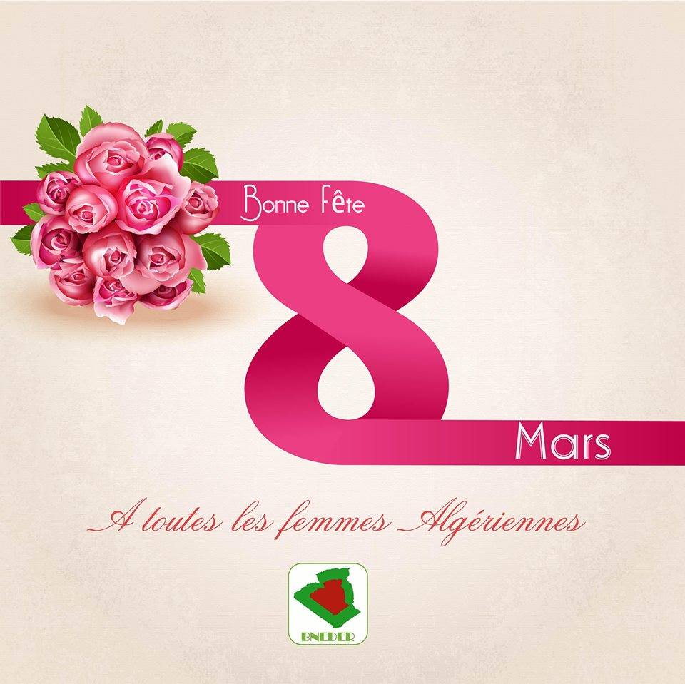 A l’occasion de la célébration de la Journée Internationale des Femmes, la Direction Générale du BNEDER présente ses vœux les plus sincères à tout le personnel féminin de l’établissement, et lui souhaite toute la réussite, tout le bonheur et une longue vie prospère.