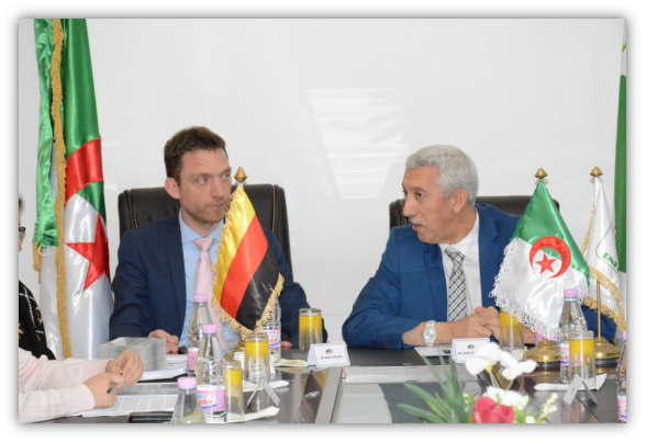 Le siège du BNEDER, à Bouchaoui, a accueilli le jeudi 23 mars 2017, une délégation allemande emmenée par M. Niels SCHUTT, Chargé de mission auprès du Ministère Fédéral Allemand de la Coopération Economique et du Développement, Mme Annette RICCIUS, Responsable pour l’Algérie auprès de l’Agence Allemande de la Coopération Internationale (GIZ), Mme Lea Ernestus et M. Wolfgang Klapper de l’Ambassade d’Allemagne.