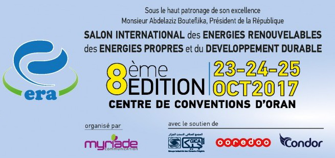 La 8ème édition du Salon international des énergies propres, des énergies renouvelables et du développement durable ‘’ERA 2017’’, a ouvert ses portes du 23 au 25 octobre au Centre des conventions d'Oran avec la participation de plus de 80 exposants nationaux et étrangers.