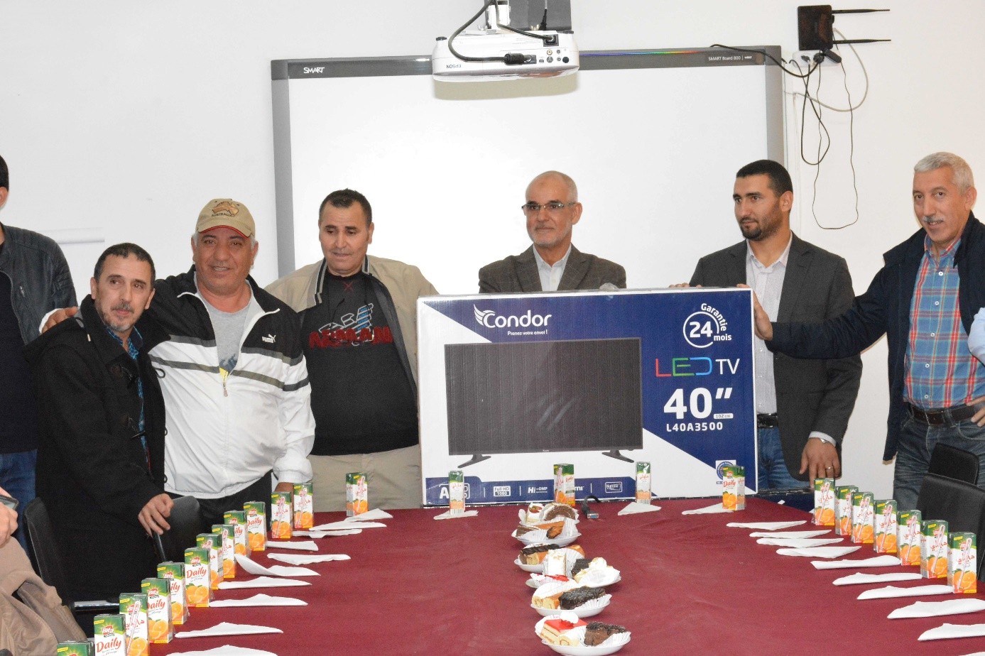 Organisée par la commission des œuvres sociales de l’établissement, cette cérémonie a vu la présence du Directeur Général, M. Salah-Bey Aboud, et les membres de ladite commission, M.M. Ouabri Ahmed, Hamma Houssem-eddine et Ihedène Sofiane qui ont remis des cadeaux à M.M. Belkhiar Rachid, Kara Mouloud, Lounici Abdelkrim et Boulatiour Abdelhak