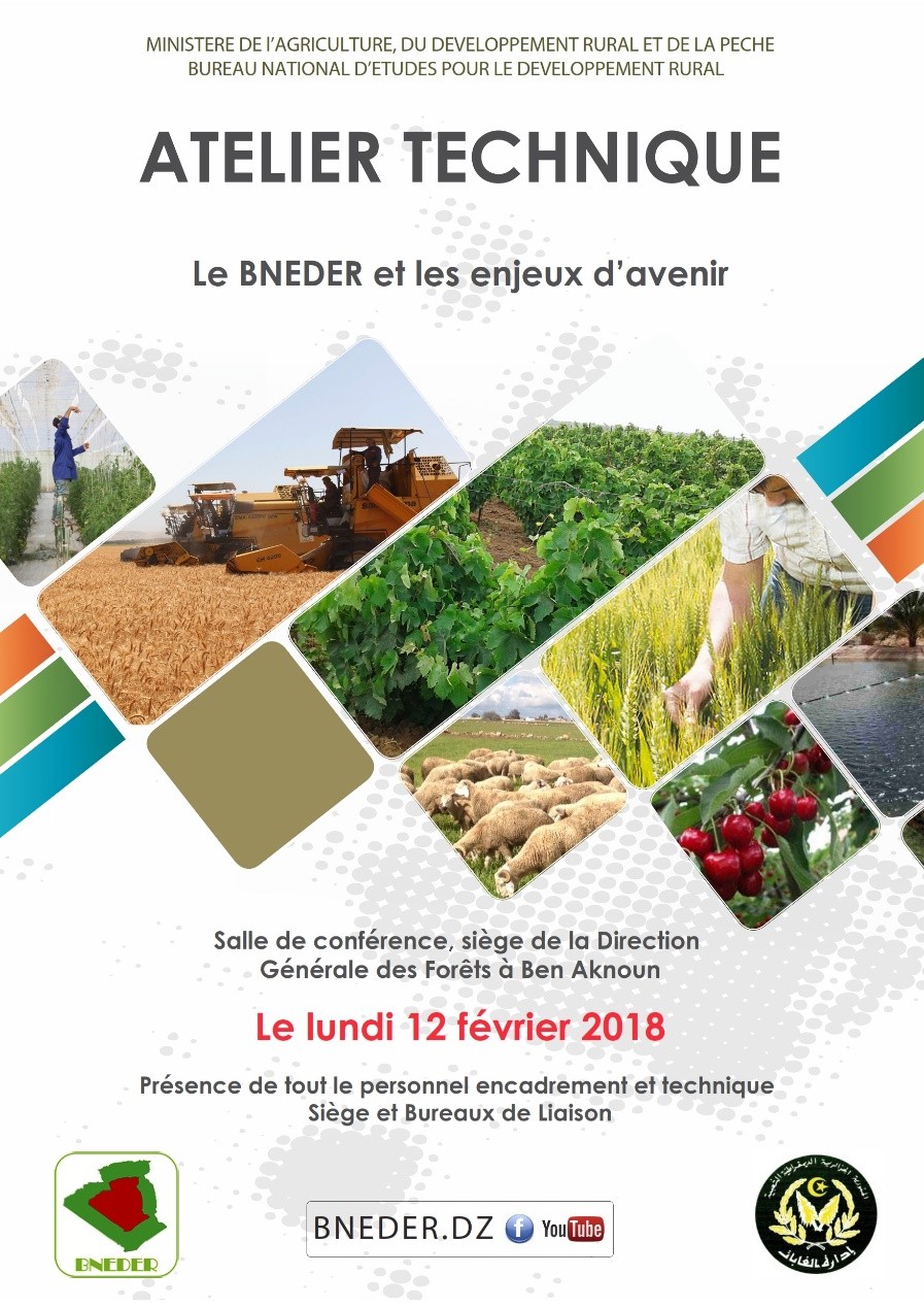 La Direction des Etudes, de la Formation et de la Programmation (DEFP) a établi le programme de la 2ème édition de l’Atelier Technique National du BNEDER qui aura lieu le lundi 12 février 2018, au niveau de la salle de conférence du siège de la Direction Générale des Forêts (DGF).