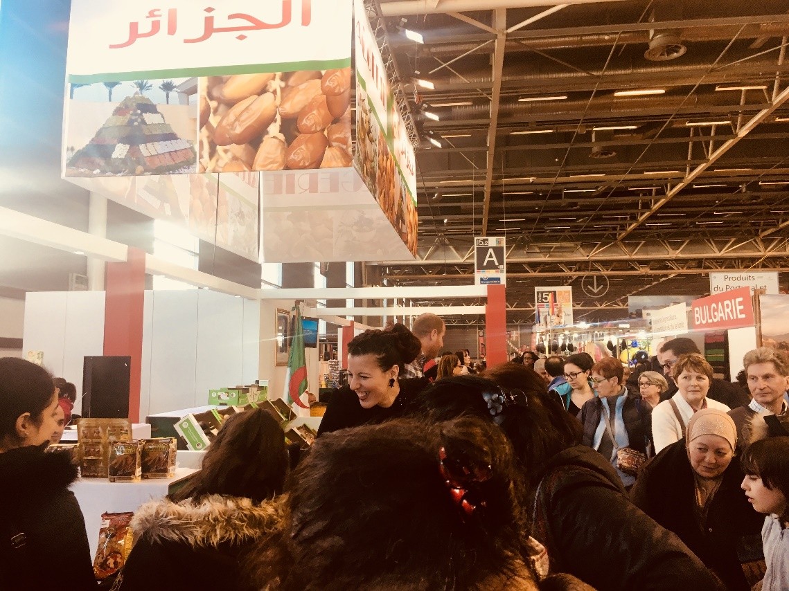Parmi les produits exposés, on trouve les dattes Deglet Nour, figues, couscous, produits laitiers, huile d’olive, vin, et la nouveauté de cette année : fruits et légumes, safran, huiles essentielles, plantes aromatiques et caroube. ”Les gens sont étonnés d’apprendre que le safran, les huiles essentielles et le bio existent aussi en Algérie”, indique M. Chalal, qui se réjouit : “Nous avons reçu la visite de professionnels qui ne demandent pas mieux que de visiter des exploitations et de faire des affaires en Algérie – et les points de distribution et restaurants sont aussi demandeurs de produits du terroir algérien”.