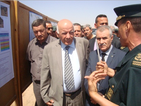 Le Ministre de l’Agriculture et du Développement Rural, Dr Rachid Benaïssa, a effectué dimanche 23 juin 2013 une visite de travail et d’inspection dans la wilaya de M’sila ; une visite qui s’inscrit dans le cadre de la célébration de la journée mondiale de lutte contre la désertification.Accompagné du wali de M’sila, Monsieur Abdallah Ben Mansour, et d’une forte délégation ministérielle comprenant plusieurs directeurs centraux et de hauts responsables du secteur, le ministre s’est réuni avec les agriculteurs et les représentants des organisations professionnelles avant de procéder à plusieurs visites à travers la wilaya, notamment à El-Hamel où une équipe de la conservation des forêts à laquelle s’est associée l’équipe du BNEDER pour présenter un point de situation sur le barrage vert. Le représentant du BNEDER, Monsieur Hellal Fayçal, a, pour sa part, exposé l’état d’avancement de l’étude relative à la réhabilitation et à l’extension du barrage vert, notamment en ce qui concerne la wilaya de M’sila. Des explications ont été données par Monsieur Hellal ainsi que Monsieur le Directeur Général du BNEDER, présent également sur les lieux de cette visite.