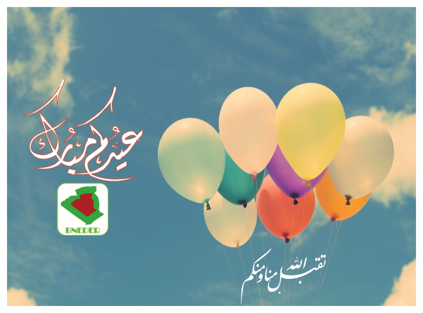 بمناسبة حلول عيدا الفطر المبارك لعام 1439 هجري الموافق لسنة 2018م، يتقدم المكتب الوطني للدراسات الخاصة بالتنمية الريفية وعلى رأسه السيد المدير العام صالح باي عبود، الى كل الزملاء العاملين بالقطاع، الى شركائه الاحباء والمستثمرين والى كافة الشعب الجزائري وللامة الإسلامية جمعاء، بخالص التهاني القلبية وبأصدق وأسمى آيات التهاني والتبريكات، راجين من المولى عز وجل ان يتقبل منا ومنكم صالح الاعمال، وان يعيده علينا وعليكم بالخير واليمن والبركات.