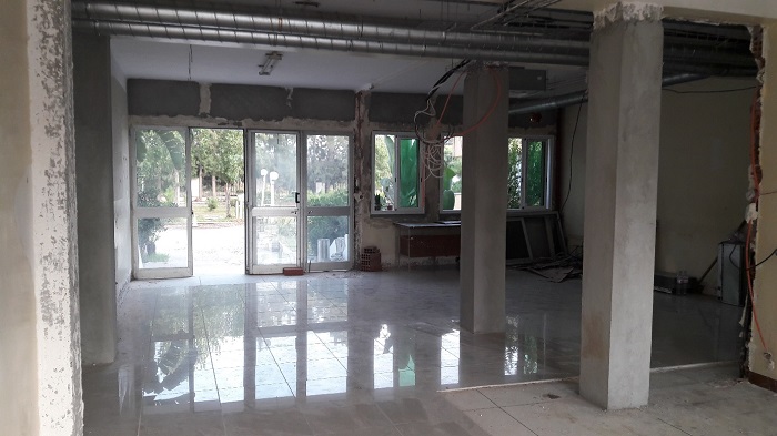 Le hall principal et l’aile Est du rez-de-chaussée du bâtiment, renfermant notamment le Centre de Documentation et de Cartographie, fait l’objet des derniers travaux avant les façades extérieures.