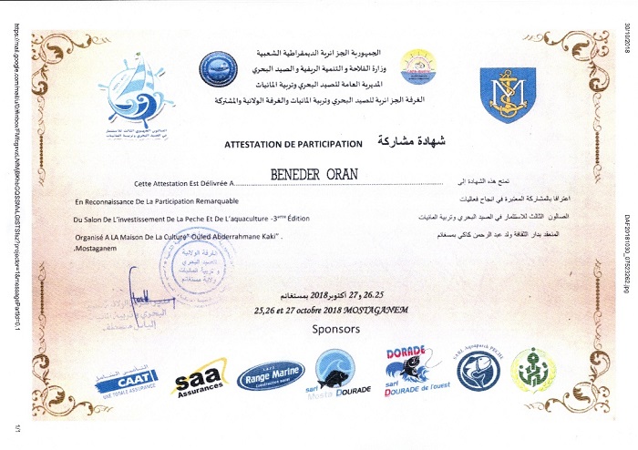 Le BNEDER a participé à la 3e édition du salon régional de l’investissement dans la pêche et l’aquaculture qui a été organisé du 25 au 27 octobre 2018à Mostaganem, à travers un stand dédié aux projets piscicoles et aquacoles, à l’instar d’une cinquantaine d’exposants relevant du secteur.