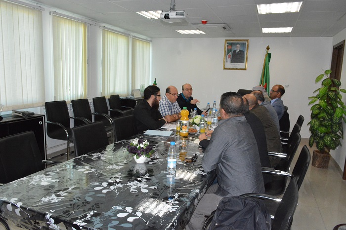 Faisant suite à une demande d’élaboration d’une étude de faisabilité technico-économique d’une concession oléicole de 1 000 hectares localisée dans le périmètre d’Ain Lahdjar (Commune de Rouisset, Wilaya d'Ouargla) et pour laquelle le BNEDER avait transmis une offre de services au courant du mois d’Octobre dernier, une délégation composée d’investisseur national (EURL HORIZON AGRITECH) en partenariat avec le fond d’investissement « Arab Authority for Agricultural Investment and développement » et Spanish Olive (Groupement d’entreprises spécialisés en produits oléicoles) a été reçue au siège de l'établissement le mercredi 07 novembre 2018, par un groupe de responsables formé de M.M. KIOUANE Djalaleddine (Directeur des contrats et du soutien), ABBAS Said (Sous-directeur des études d’aménagement agricoles) AMIMEUR Matouk (Sous-directeur de la programmation des moyens techniques) AYACHI AMOR Yazid (Assistant auprès de la direction générale chargé des affaires juridiques et du contentieux) et MEZAOUR Riadh (Cadre d’étude en hydraulique).