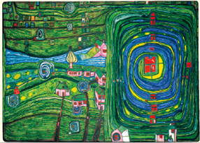 L'artiste autrichien Friedensreich Hundertwasser (1928-2000) utilisait des couleurs vives et des formes organiques pour manifester une réconciliation de l'homme avec la nature, notions qui font écho au thème de la Journée mondiale de l'alimentation de cette année.