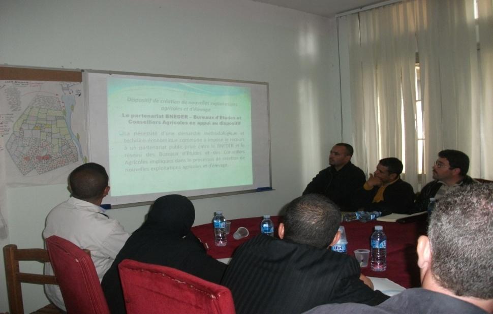 Posté par admin le Jeudi 08-12-2011Le BNEDER informe les bureaux d'études et conseillers agricoles des wilayas de la steppe n'ayant pas encore assisté aux sessions de formation de mise à niveau sur les termes de référence des études de faisabilité technico-économiques pour la création de nouvelles exploitations agricoles et d'élevage qu’une session sera organisée :