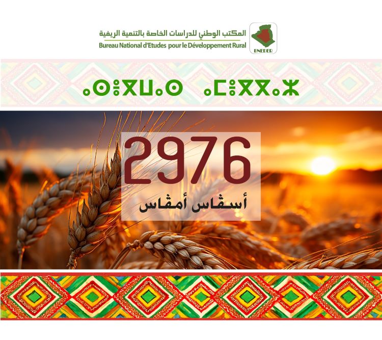 بمناسبة حلول رأس السنة الأمازيغية "يناير 2976"، بداية الموسم التقليدي الفلاحي، يطيب للسيد المدير العام أن يتقدم إلى كافة إطارات وعاملات وعمال المؤسسة، بأسمى آيات التهاني وأصدق التبريكات.