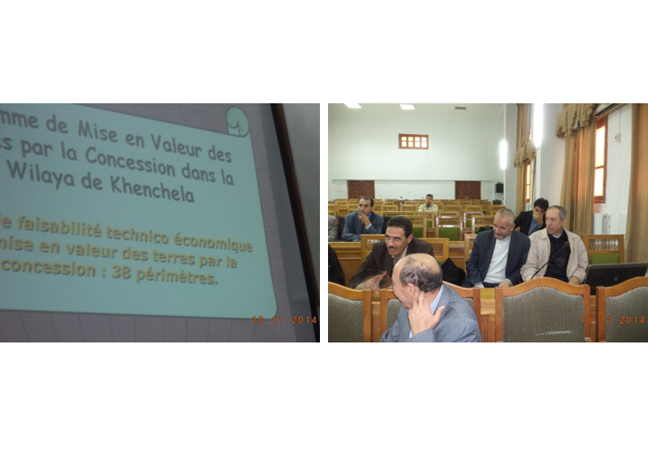 Dans le cadre du marché d’application relatif aux études de faisabilité technico-économique de 418 périmètres de mise en valeur des terres par la concession inscrit au contrat-programme liant le BNEDER au MADR, le siège de la wilaya de Khenchela a abrité, le lundi 10 Novembre 2014, une réunion de présentation d’une partie des études concernant cette wilaya.