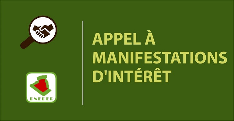 Posté par admin le Lundi 18-03-2019Le BNEDER lance un Appel à manifestation d’intérêt, portant sur une sélection d'une short-list par wilaya (entreprise ou BET), spécialisés par la prise en charge des opérations préparatoires des missions de prospection pédologiques des équipes du BNEDER.