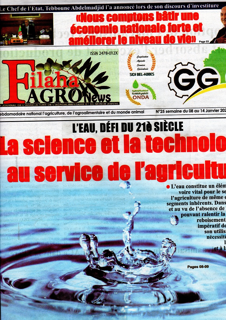 Posté par admin le 16-01-2020Spécialisé dans le domaine de l’agriculture, l’hebdomadaire Filaha Agro News vient d’éditer son 25e numéro de la semaine, avec des sujets intéressants.
