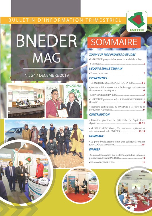 Quant à la rubrique évènements, retour sur divers évènements et manifestations auxquelles le BNEDER a pris part, notamment sa participation aux salons Sipsa Filah, au SIPA d’Oran, à la foire de la production nationale, au Sud-Agro à Ghardia.