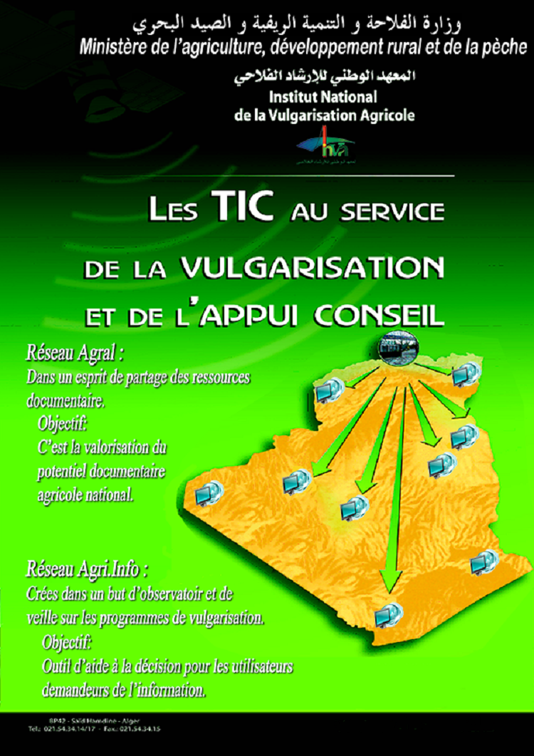 Posté par admin le 06-02-2020L’Institut National de la Vulgarisation Agricole (INVA) organise dimanche 09 février 2020, une journée technique sur le réseau documentaire de l’agriculture algérienne « AGRAL », qui aura lieu au niveau de son siège, et à l’instar d’autres institutions techniques du secteur, le BNEDER est également invité à y prendre part.