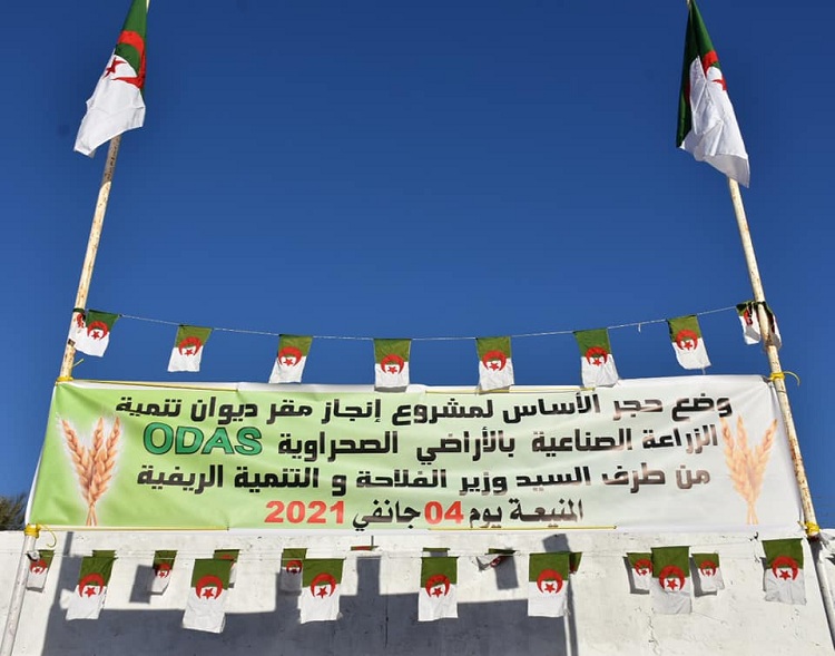 Posté par admin le 05-01-2021Monsieur Abdelhamid Hemdani, Ministre de l’Agriculture et du Développement Rural, a effectué lundi 04 janvier 2021 une visite de travail et d’inspection dans la wilaya de Ghardaia et la wilaya déléguée de Mnéa. Monsieur le ministre a entamé sa visite par la pose de la première pierre pour la construction du siège de l’Office de Développement de l’Agriculture industrielle en terres sahariennes (ODAS) dans la wilaya déléguée de Mnéa, qui sera l'instrument de mise en œuvre de la politique nationale de promotion et de développement des cultures industrielles dites stratégiques.
