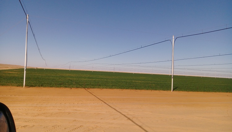 Les floppy sprinklers sont espacés entre lignes et entre rang de 84x12 m et chaque sprinkler débite 113.04 M3. Rappelons que la culture du blé dur mise en place début décembre est au stade plein tallage - début montaison. Reste par ailleurs, à déterminer le coût réel à l’hectare, comparé au système d'irrigation par centre pivot.