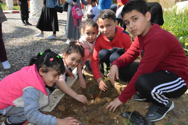 Plantation d’arbustes avec la participation des enfants des travailleurs