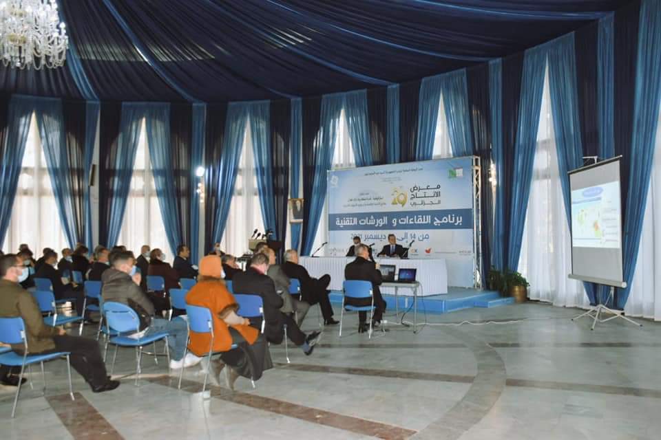 Posté par admin le 21-12-2021« La contribution du secteur agricole dans la diversification de la production nationale », était le thème pivot de l’exposé présenté par le Directeur Général du BNEDER, M. BENMOHAMED Khaled, et ce, en présence du Ministre de l'Agriculture et du Développement Rural, M Abdelhafidh Henni, lors de la conférence sur la contribution du secteur agricole dans l'économie nationale, tenue lundi 20 décembre 2021, à la Salle Dar El Djazair, au Palais des Exploitions, dans le cadre des activités de la Foire de la production nationale. M le Ministre a, après avoir donné les directives nécessaires à l’ensemble des responsables présents, n’a, par ailleurs, pas omis de féliciter le BNEDER et son staff pour son efficacité et la diligence dont il fait preuve pour rehausser l’image du secteur de l’agriculture et du développement rural.