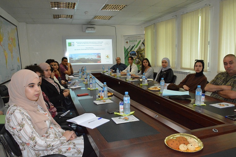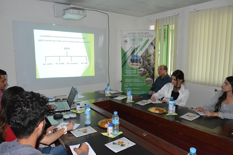 Posté par admin le 26-05-2022Mercredi 25 mai 2022, des étudiants de 4e année en agroéconomie de l’'École Nationale Supérieure Agronomique d'Alger, (ENSA) ont visité le BNEDER à l’initiative de leur professeur. Cette visite s’inscrit dans le cadre de l’apprentissage pédagogique en dehors des salles de conférences et aux échanges interactifs avec le milieu professionnel. Accueillis sitôt par le staff du BNEDER à leur tête Monsieur le Directeur Général, les hôtes ont eu l’occasion de découvrir les activités du BNEDER, ses missions et ses réalisations, à travers une présentation qui leur a été faite, et des conseils pratiques et pertinents sur le fonctionnement du métier d’une manière générale. La visite s’est poursuivie au niveau des différents départements (Centre de documentation, SIG, GL, Laboratoire et salle de conférence).