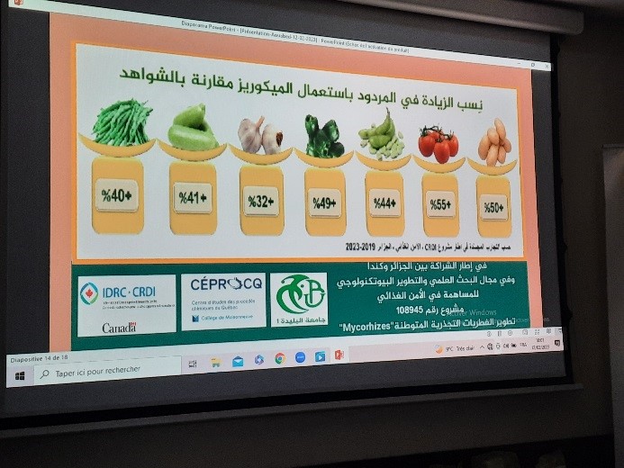 Il convient de rappeler, que ce projet de recherche appliquée, pensé et conçu par Docteur BOUMGHAR et financé par le CRDI a démarré en Algérie en septembre 2019, en collaboration avec l’université de « Saad Dahleb » de Blida. Ce projet de coopération Algéro-Canadien vise à démontrer les bienfaits d’une mycorhization adaptée aux différents types de sols agricoles tout en contribuant à la sécurité alimentaire en Algérie. Le recours à une agriculture plus productive et moins dépendante des engrais minéraux (phosphates) ne pourra se faire sans l’optimisation des interactions biologiques des agroécosystèmes tels que les mycorhizes. En effet, les études démontrent que 60% à 90% des fertilisants chimiques conventionnels se perdent dans l’environnement et que la plante ne bénéficie que de 10 à 40% de ces fertilisants chimiques, engendrant ainsi un coût élevé tout en causant des dommages à l’environnement, de par leur contenu en azote(N), phosphore(P), et potassium(K). Par conséquent, la bio-fertilisation utilisant des mycorhizes représente un système bioactif intégré de gestion des nutriments conduisant à une agriculture productive et durable tout en contribuant à la préservation de l’environnement. Les biointants à base de mycorhizes endémiques assurent une meilleure qualité des récoltes et des rendements supérieurs par rapport à l’agriculture conventionnelle.