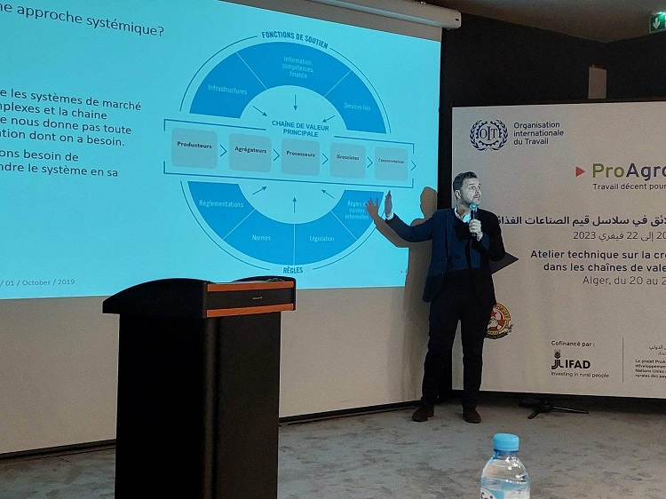Posté par admin le 26-02-2023Le BNEDER a participé les 20, 21 et 22 févrir 2023 à l’atelier de sensibilisation sur la création d’emplois décents dans les secteurs agro-alimentairesur initié par l’Organisation Internationale du Travail (OIT). Le projet « ProAgro Jeunes » est mis en œuvre en Algérie par un consortium dirigé par le Bureau de l’OIT à Alger et comprenant l’Agence Nationale de l’Emploi (ANEM), l’Agence Nationale d’Appui et de Développement de l’entrepreneuriat (ANADE) et le BNEDER.