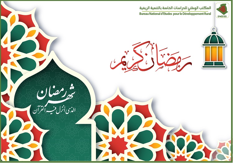 Posté par admin le 22-03-2023A l'occasion du mois sacré de Ramadhan, le BNEDER a le plaisir de présenter au peuple algérien ainsi qu'à tous les musulmans ses vœux les plus chaleureux et les plus sincères, en souhaitant que ce mois apporte à tout un chacun joie, santé, prospérité et réussite. Que Dieu le Tout-puissant agrée notre jeûne, nos prières et nos bonnes œuvres.