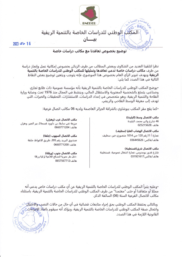 خطة عمل الديوان الوطني للأراضي الفلاحية