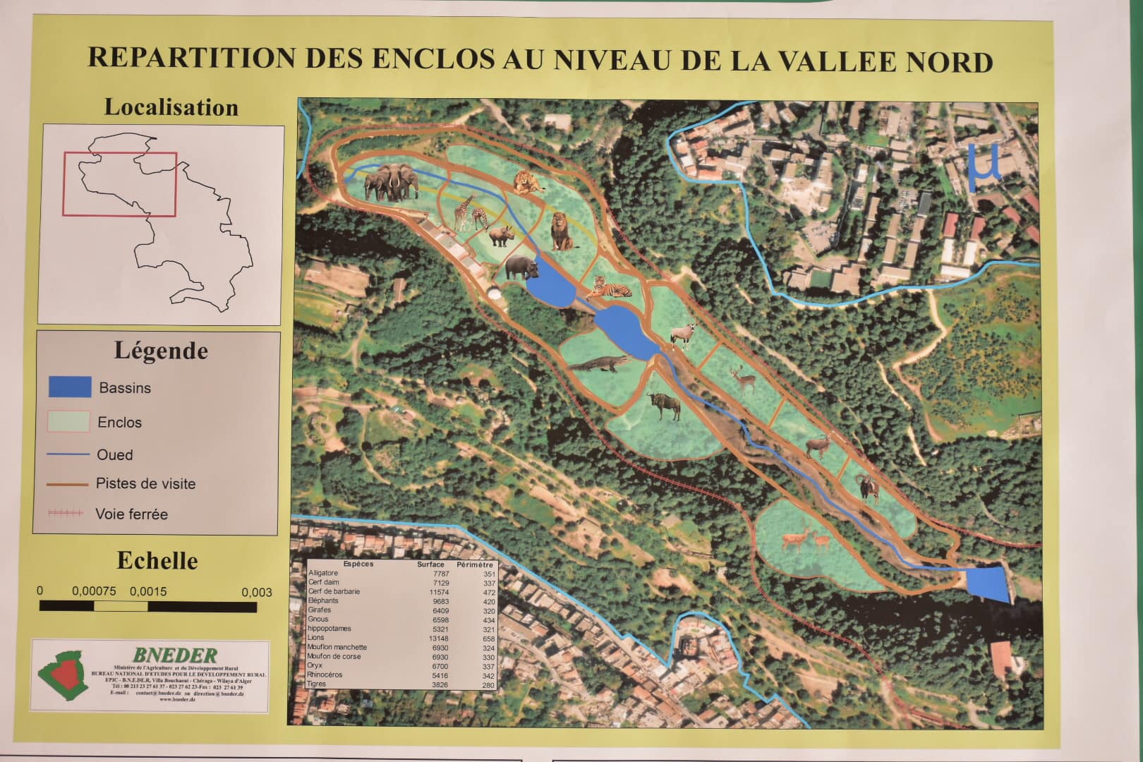 Posté par admin le 01-10-2023Le wali d'Alger, Monsieur Mohamed Abdennour Rabhi s'est enquis samedi 30 septembre 2023, de l'état d'avancement des travaux de réhabilitation de plusieurs structures, et ce dans le cadre de la vision stratégique de développement et de modernisation de la capitale au titre du plan vert élaboré au niveau de la wilaya. Le wali a inspecté ensuite, les travaux en cours pour réhabiliter le parc d'attraction et de divertissement de Ben Akoun, cet établissement devrait se transformer en parc "Safari". Il a dans ce cadre, écouté l’exposé présenté par M. AZZOUG Amasten Cadre d’études au sein du BNEDER sur le projet d’étude, de suivi et réaménagement du parc zoologique et sa transformation en parc Safari. Pour rappel, les travaux concernent notamment l'attribution de grands espaces pour que les animaux puissent se déplacer librement, l'aménagement de parcours pour les visiteurs à travers des tunnels en verre leur permettant de voir les animaux de près, la mise en place de bassins d'eau, l'intégration de nouveaux jeux de saut à la corde et d'escalade, et de lacs artificiels, ainsi que la clôture du parc.