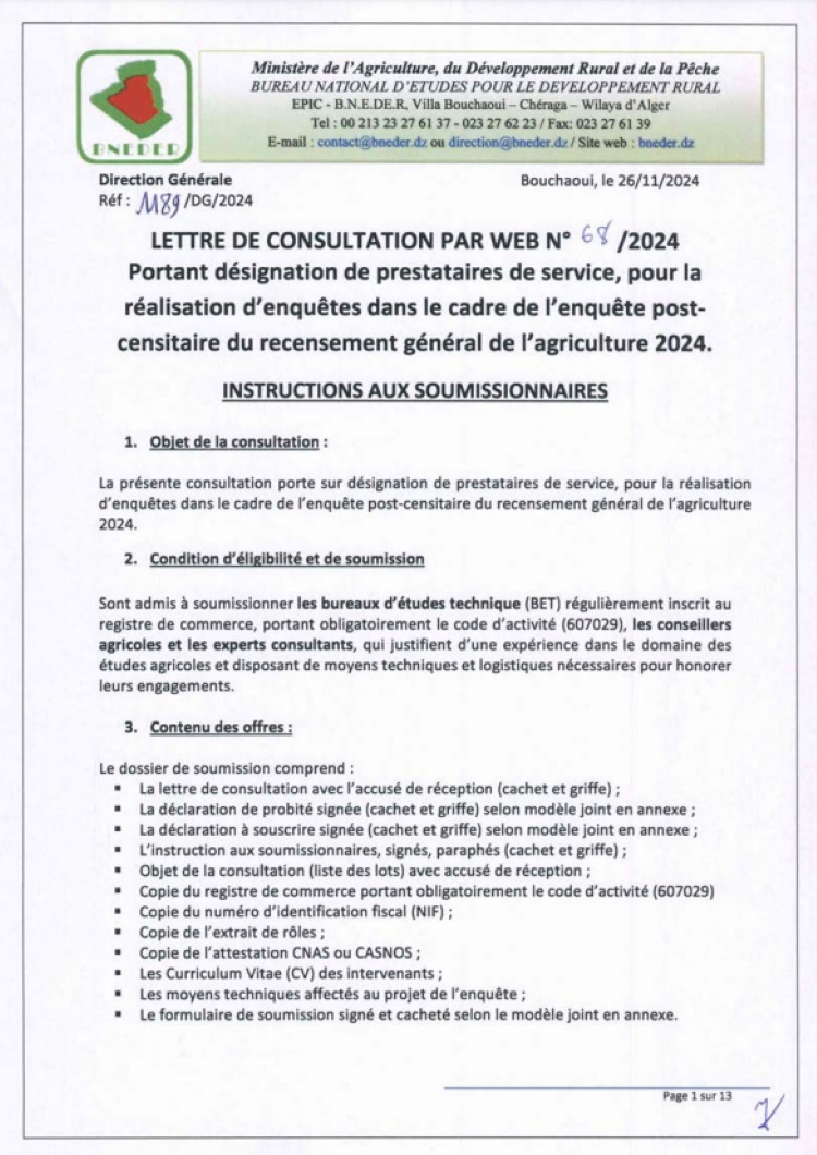 *Pour plus de détails veuillez télécharger la lettre de consultation N°68 sur le site web www.bneder.dz ou cliquer sur le lien suivant :