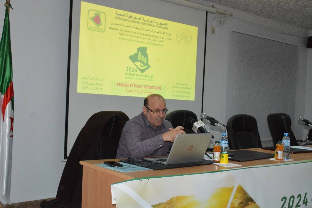 Posté par admin le 16-01-2025Lancement de la première session de formation des contrôleurs formateurs dans le cadre de l'enquête post-censitaire du Recensement Général de l'Agriculture (RGA202), à l'Institut Technologique Spécialisé de Formation Agricole de Médéa. Cette formation, organisée par le BNEDER en collaboration avec la Direction des statistiques de la numérisation et de la prospective (DSNP) du MADRP, du 14 au 15 janvier 2025. Son objectif est de renforcer les compétences des contrôleurs afin de leur permettre de mener à bien les travaux liés à l'enquête post-censitaire dans les wilayas et communes concernées.